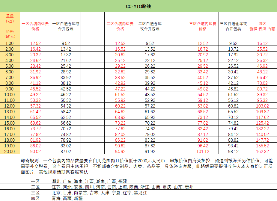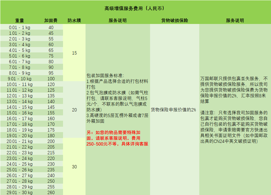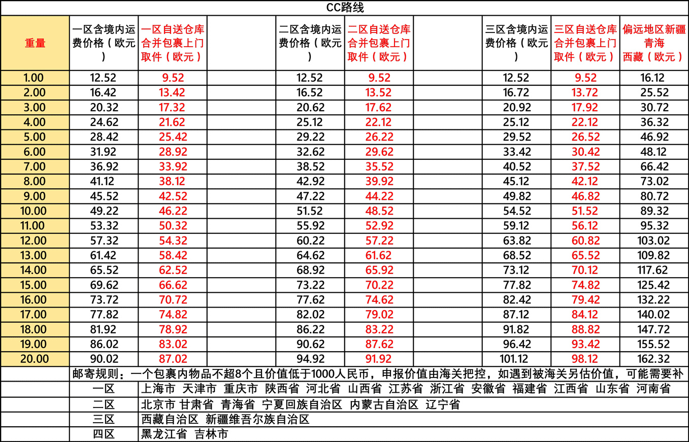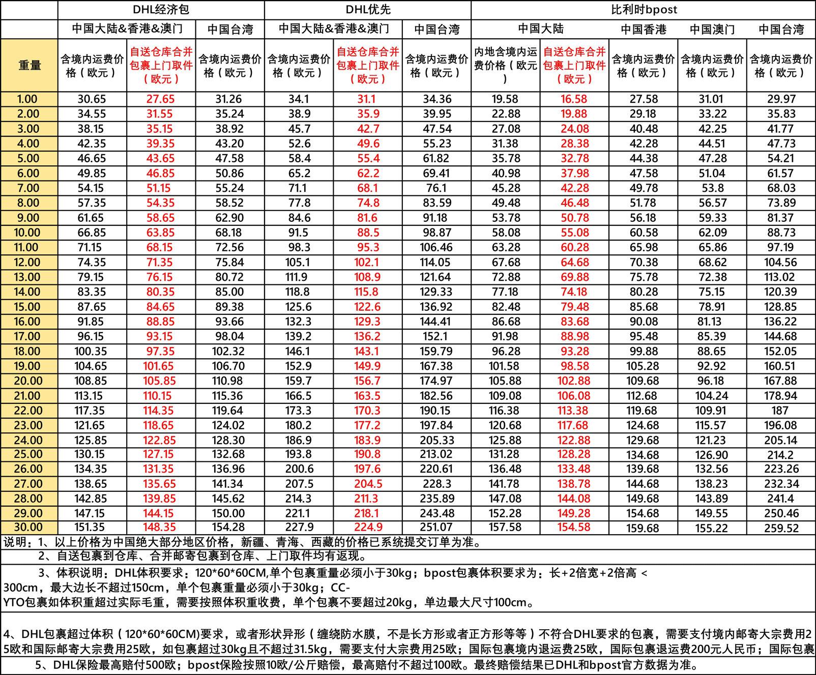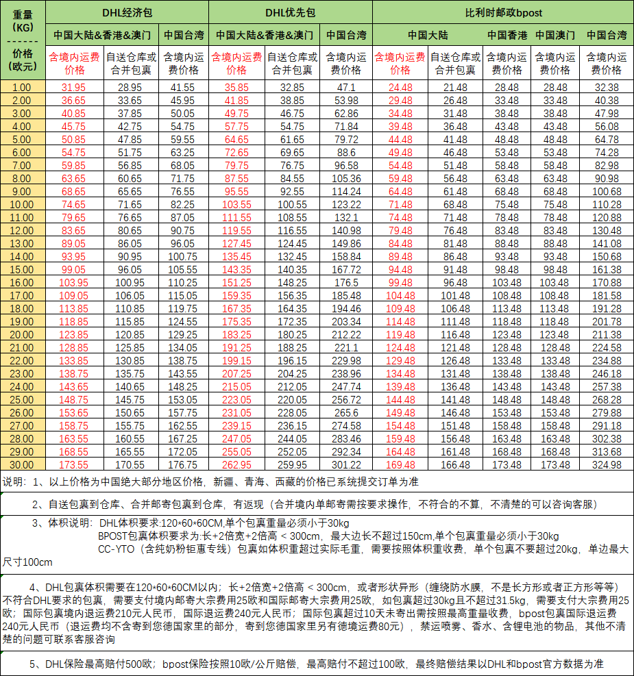 DHL全球运费