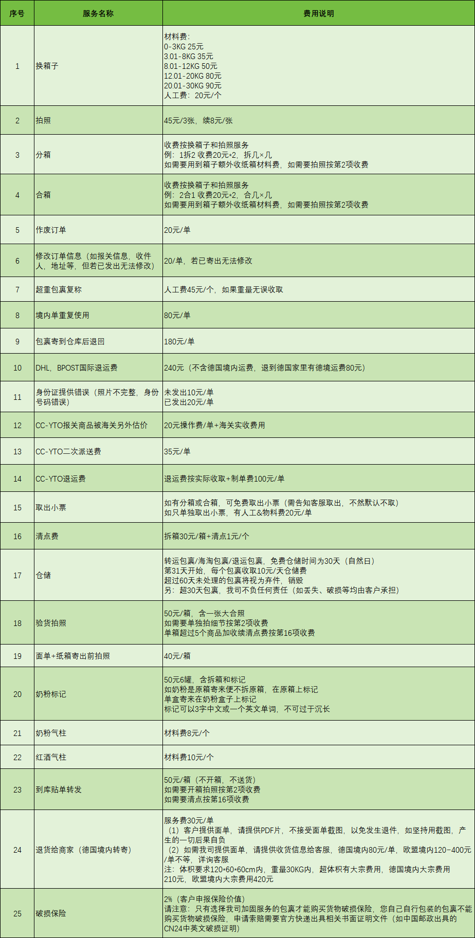 超重、退改单等杂费的执行标准